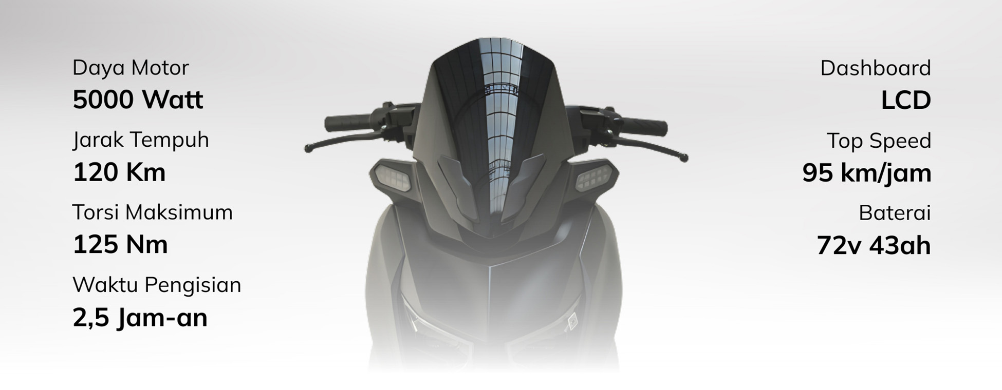 | Kapasitas Baterai | 76 V 43 Ah | 72 V 38 Ah | 72 V 38 Ah | 72 V 30 Ah |